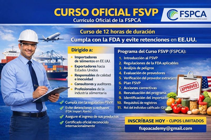 Curso para participantes de los Programas de Verificación de Proveedores Extranjeros (FSVP) de la FSPCA