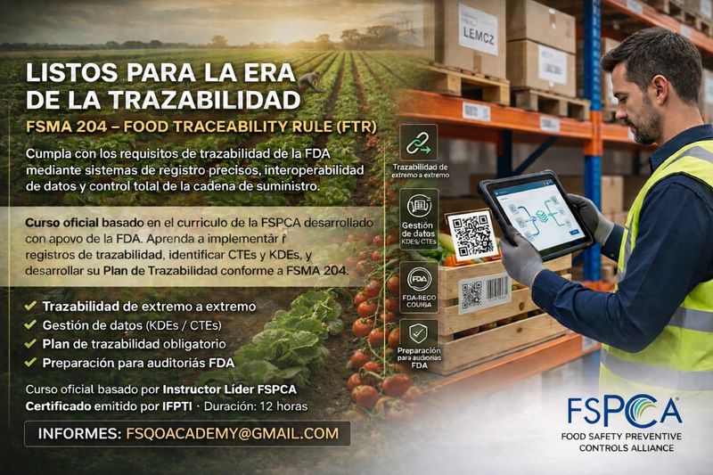 Obtén las habilidades necesarias para cumplir con las normativas de la FSPCA y asegurar la calidad en la producción de alimentos.